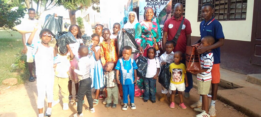 C’est dans cet esprit de joie que la salle des professeurs du collège Teerenstra a été transformée le 29 décembre 2025, en un espace de joie et de partage. Soutenue par la Fondation Black Star Academy, la Révérende sœur y a accueilli une centaine d’enfants pour une cérémonie modeste et chaleureuse.