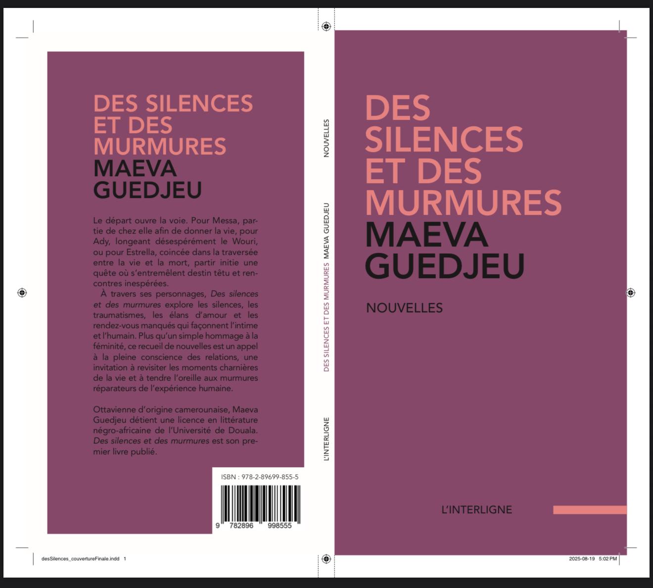 Maeva Guedjeu est une écrivaine camerounaise vivant au Canada. Son écriture, à la croisée des territoires et des mémoires, s’inscrit dans une démarche littéraire attentive aux voix marginales, aux fractures intimes et aux blessures sociales longtemps tues. Nourrie par l’expérience de la migration, par l’observation des rapports de genre et par une sensibilité aiguë aux injustices ordinaires, elle développe une prose épurée, directe, souvent sans concession. Des silences et des murmures s’impose comme une œuvre emblématique de son engagement littéraire : donner corps et langage à celles que l’histoire intime et collective relègue trop souvent au silence.
