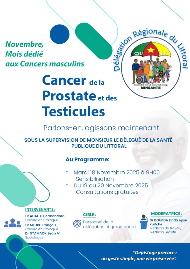 Sous la supervision du Délégué régional de la Santé publique du Littoral, l’Unité médico-légale et de médecine du travail mène, en ce mois de novembre, une vaste campagne de sensibilisation et de dépistage consacrée aux cancers masculins, notamment ceux de la prostate et des testicules.